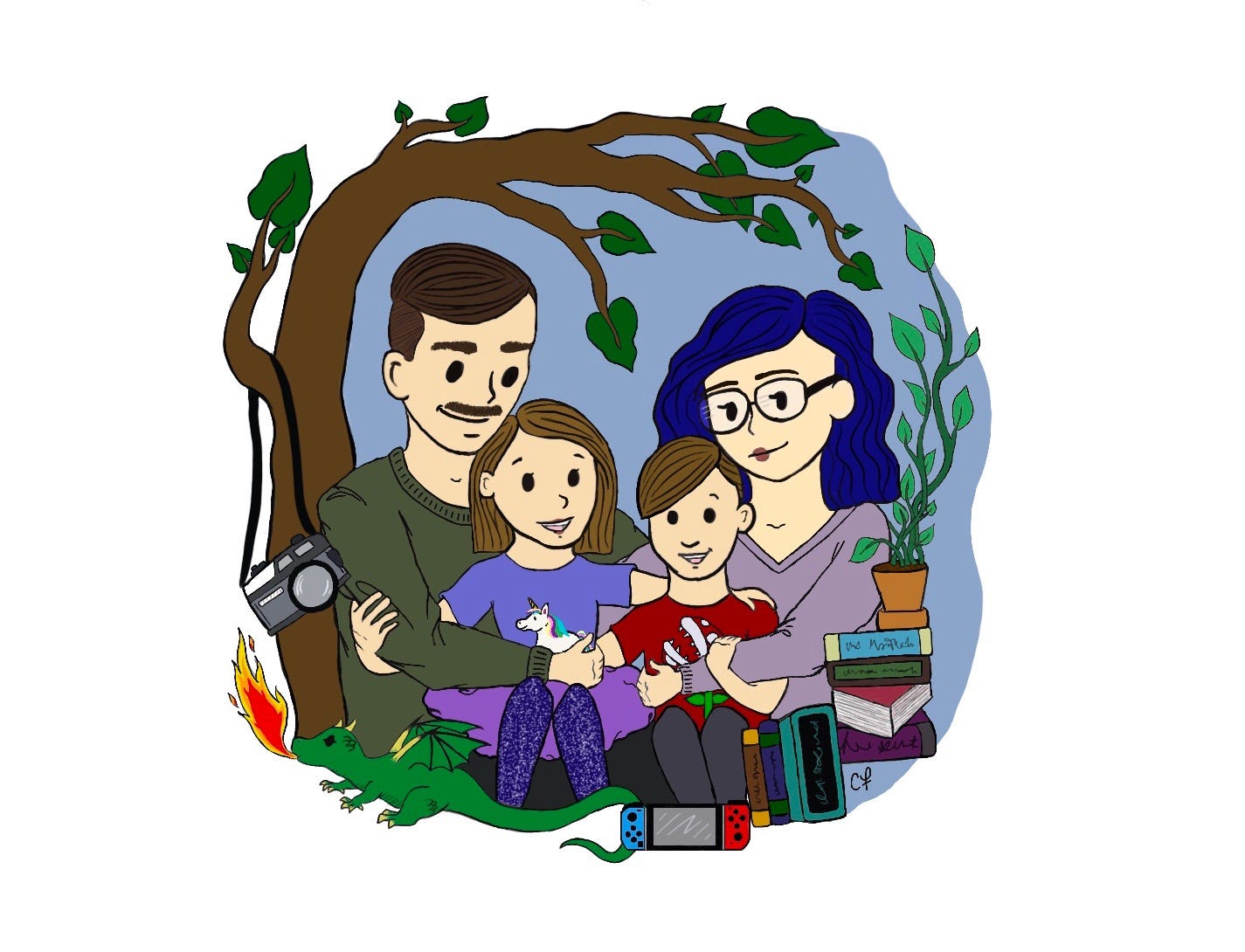 (Occasionally, I dabble in art too, like this family portrait I drew)